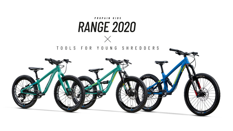 Our mountain bike line-up starts with 20” hardtail and full suspension bikes. Then we have a 24” wheeled bike that’s convertible to a 26” bike. They are proper mountain bikes for kids whether they want to just go ride around or go ride at a bike park.