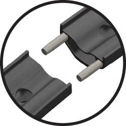 Two press-fit steel pins make a durable, cost-effective joint.