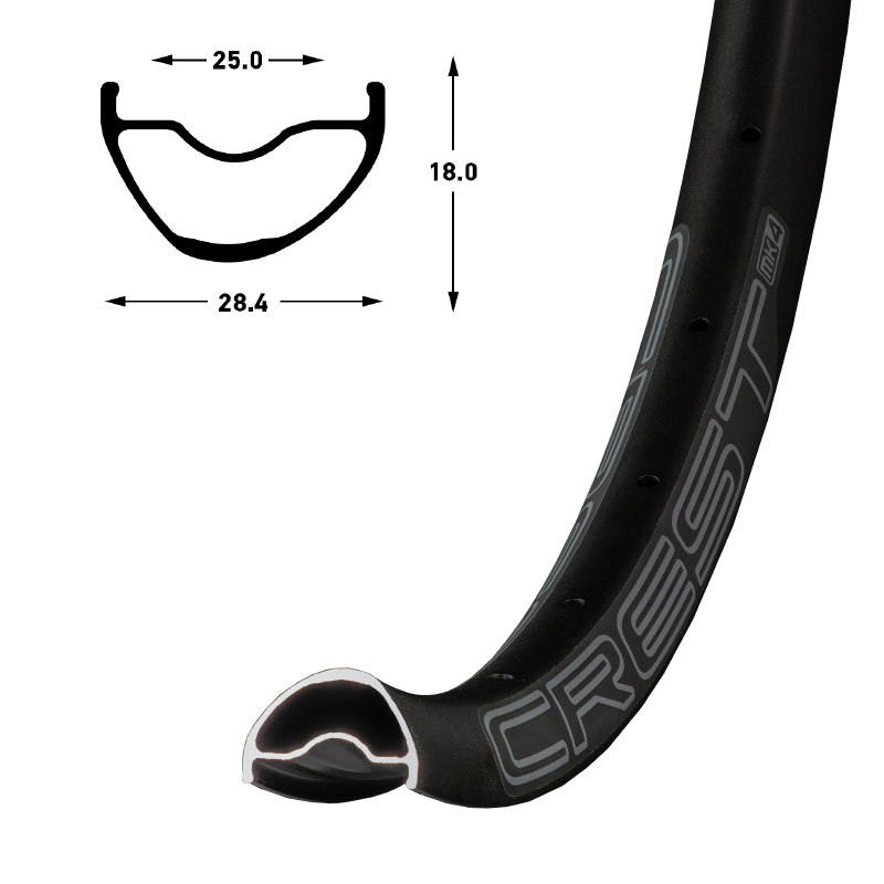 Crest rims offer a wheel platform attractive to both the light trail and cross country rider, in addition to gravel riders seeking wider tire options.