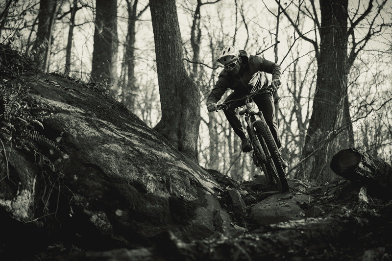"I love the self-filming process. There’s something very meditative in there for me, and recently I decided to go the solo route for a concept I’ve been chewing on for a couple of years. I filmed “sticks & stones” on some local mid-Atlantic trails with a goal to create a stylized, dark, gritty, and chilly homage to the nuanced yet brilliant riding opportunities afforded to east coasters during “stick season”. The dirt is ever damp, the sight lines free from obstruction, and the chill in the air a welcome respite from the oppressive heat and humidity of the summer. There's a surreal quality to riding in the woods this time of year, and it's one of my favorite things about riding bikes on the east coast."