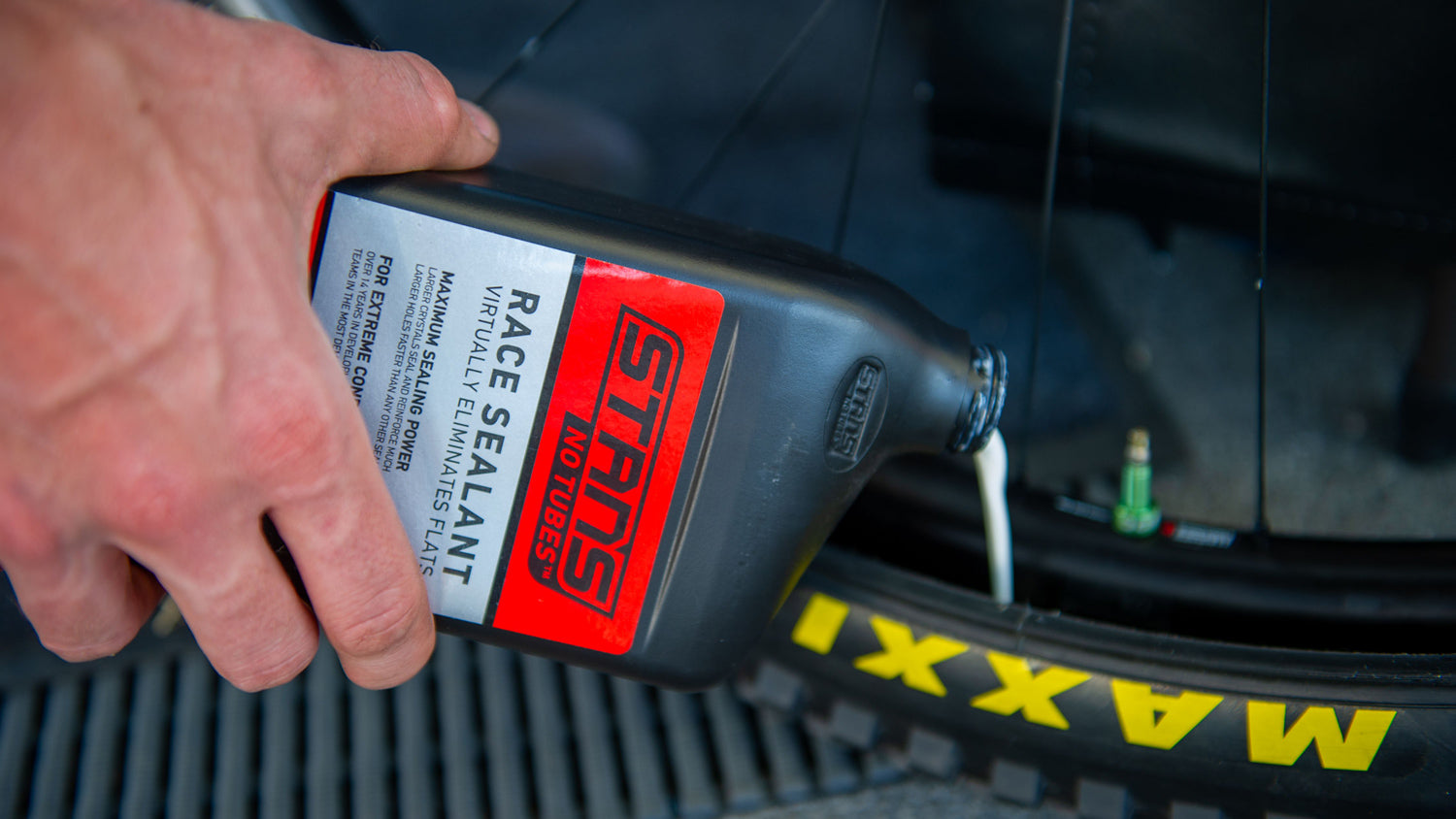 Consult the Stan’s Sealant Volume Guide to determine how much sealant to use in your tires.