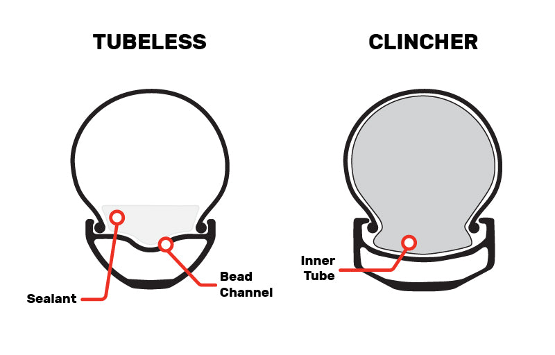 Compared to a standard tire that uses a tube, tubeless tires are manufactured to a higher standard, which helps form a tight-fitting seal to your rim and prevents air from escaping. Many tire manufacturers will label their products with their tubeless tech, for example, Maxxis TR, Schwalbe TLE, and WTB TCS.