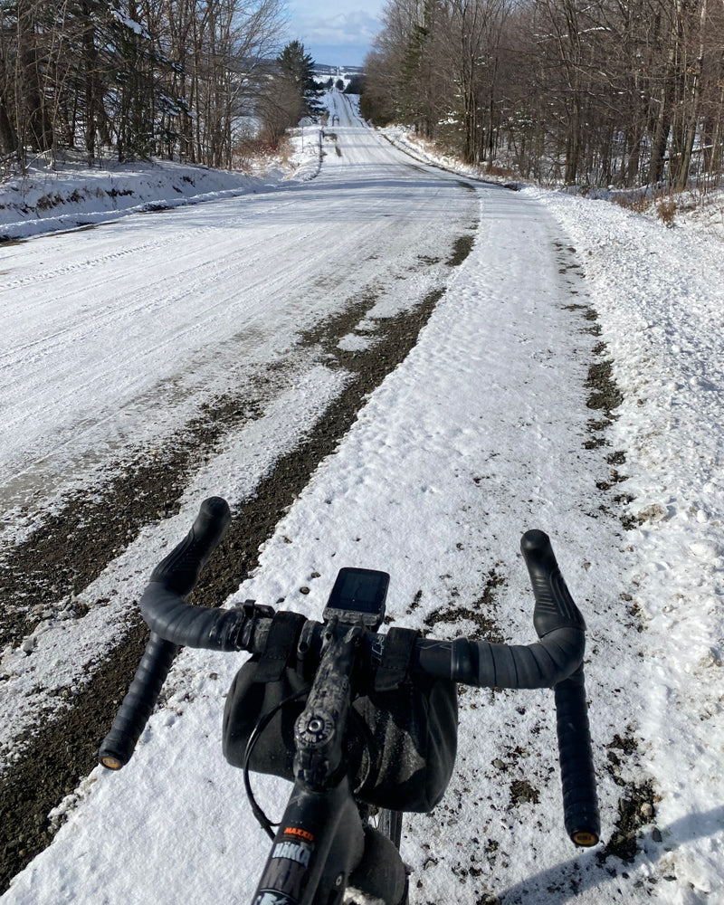 “When you’re going out for a cold road, gravel, or mountain bike ride, put your bike outside in the cold and let it sit for a bit before you set your tire and suspension pressures,” said Andrew, “so you’ll get the right pressures for the riding conditions.” He noted that it’s especially important for fat bikes because a 1/4 psi change in tire pressure makes a huge difference in how a tire with a large volume feels when you ride it.
